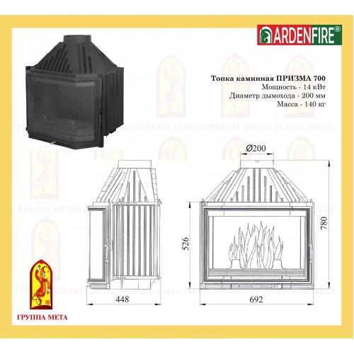Группа МЕТА представляет каминные топки ARDENFIRE изготовленные из чугуна. Топки собираются на предприятии Группы МЕТА из комплектующих и деталей разработанных и произведённых во Франции. Для уплотнения разъёмных элементов топки используются термостойкий шнур. Все изделия ARDENFIRE укомплектованы специальными термостойкими стёклами (стеклокерамикой Neoceram N-O производства Японии).