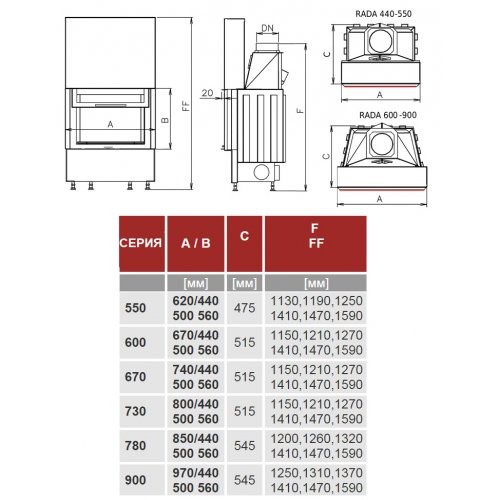 - Диаметр дымохода 180 мм